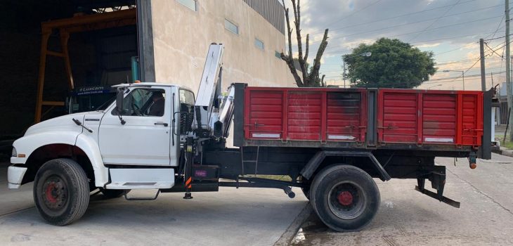 Se instalo sobre un camión Ford 14000. También se realizó alargue de chasis con modificación de volcadora para instalación de grúa.